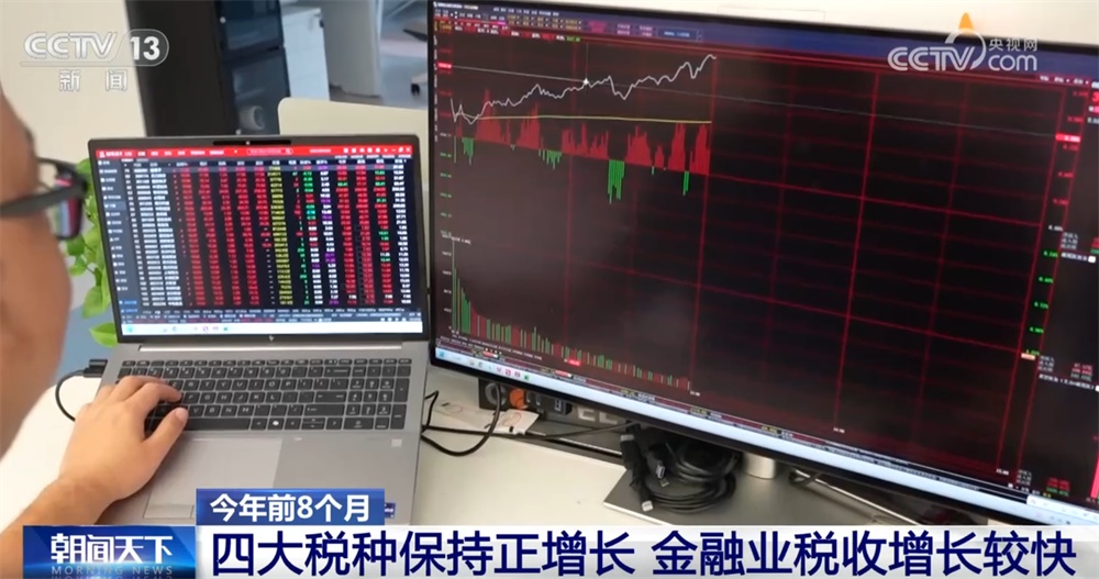 央视网消息:国家税务总局数据显示,今年前八月,四大税种均保持正增长,金融业税收增长较快。